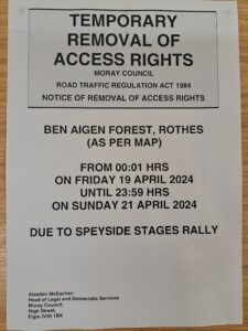 Due to the Speyside car Stages Rally taking place through Ben Aigan forest on Friday 19th, Saturday 20th and Sunday 21st April 2024 there will be no access along the Speyside Way through Ben Aigan forest during these days. Unfortunately there is no alternative route. We apologize for any inconvenience caused.