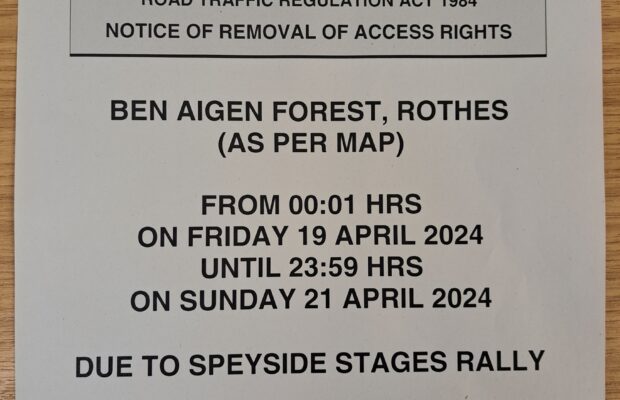 Due to the Speyside car Stages Rally taking place through Ben Aigan forest on Friday 21st and Saturday 22nd April […]