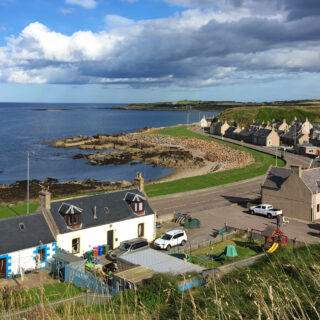 Starting from the fishing village of Buckie, the Way follows the coastline before heading slightly inland to pick up railway trackbed and woodland path. Emerging on a quiet road into the village of Spey Bay, the Way takes you to the Scottish Dolphin Centre. Afterwards it heads upstream (south) parallel to the Spey on woodland and riverside paths, and enters the classical village of Fochabers past a memorial garden.