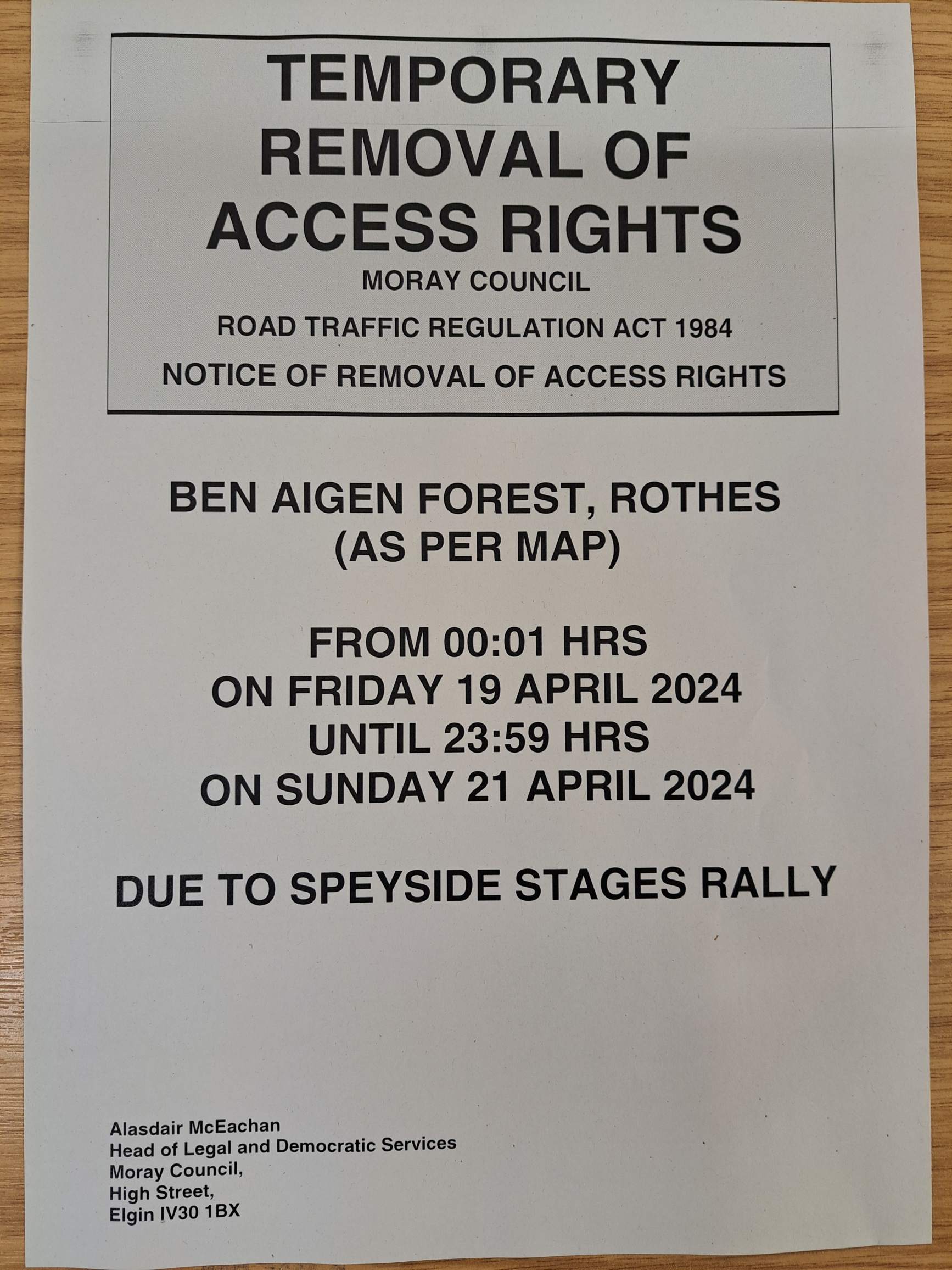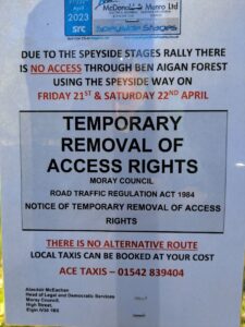 Due to the Speyside car Stages Rally taking place through Ben Aigan forest on Friday 21st and Saturday 22nd April there will be no access along the Speyside Way through Ben Aigan forest on Friday 21st and Saturday 22nd April. Unfortunately there is no alternative route. We apologise for any inconvenience caused.